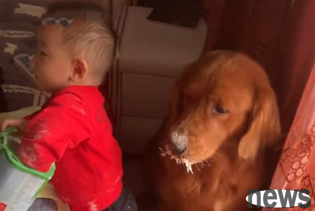 It turns out that my son actually fed the golden retriever with milk powder there, and the golden retriever was very happy to eat it. He took a big mouthful of spoonfuls and a big mouthful of spoonfuls. In the end, he ate milk powder everywhere. What was the reason for this?