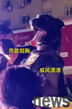 Previously, there was a police dog that attracted crowds of spectators while patrolling. Then the police dog stood up straighter and straighter as everyone cheered, with a tall posture and a confident smile...