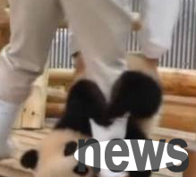 In contrast, another nanny treats the panda dumpling much more gently. This panda dumpling also has a common problem, which is "too lazy". The giant panda was too lazy to walk. At first, the nanny just pulled the bear skin of Tuanzi and walked forward, but she had no choice but to eat too much and weighed too much. The nanny couldn't carry it. She had no choice but to take it out.