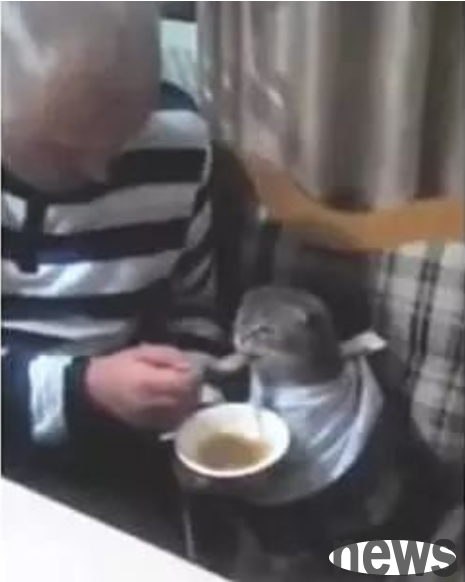 But how could I feel very awkward when my grandfather feeds the cat with a spoon bite by bit, letting the cat sit with me? What do you think about grandpa treating cats like this?