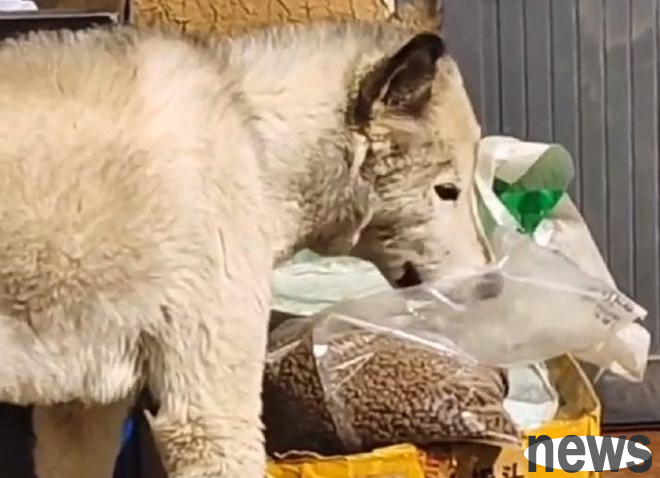 Two months later, the Alaskan dog, which was slowly returning to its natural state, was eating dog food secretly.