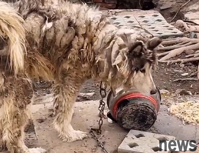 However, when the brother saw the Alaskan dog, the dog's condition was already very bad, although there were some leftovers left by its owner in the nearby food bowl. Lengzhi prevents him from starving, but because he has not been taken care of for a long time, the dog's hair has become knotted and clumps. At the same time, because he has been tied here for a long time, the dog also appears very timid and unconfident, and seems to have resigned himself to his fate, and does not react much to the surrounding situation. But faced with the dog's condition, the dog's owner still didn't care at all. Since the owner of the fish pond didn't care about the dog's life and death, the brother who couldn't bear the dog's death successfully bought the dog after bargaining with the owner of the fish pond...