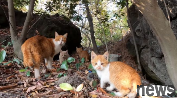 The stray cat family has been fed by humans. The broken aluminum pot next to the tree is the best proof. In addition, the mother cat did not run away immediately when she saw Mr. Juri, which shows that she has interacted with humans a lot.