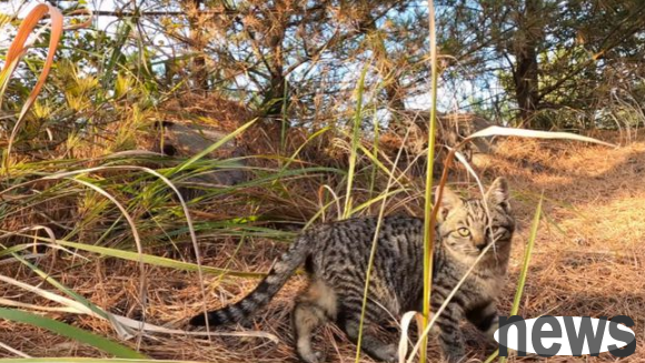 The little pimp cat squatted in the weeds and kept trying to get close to Mr. Juri. After wandering for a while, it still couldn't control its curiosity and took a few steps forward to fiddle with Mr. Juri's pockets.