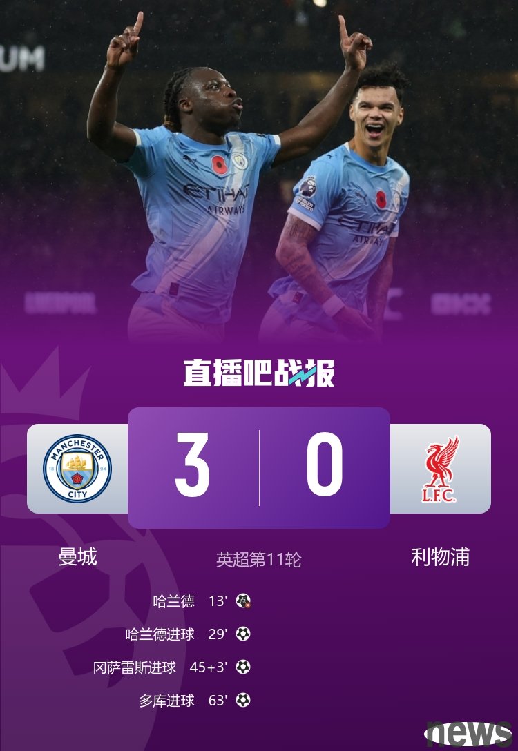 In the 11th round of the Premier League, Manchester City defeated Liverpool 3-0. Haaland scored after missing a point, and Gonzalez and Doku made contributions.
