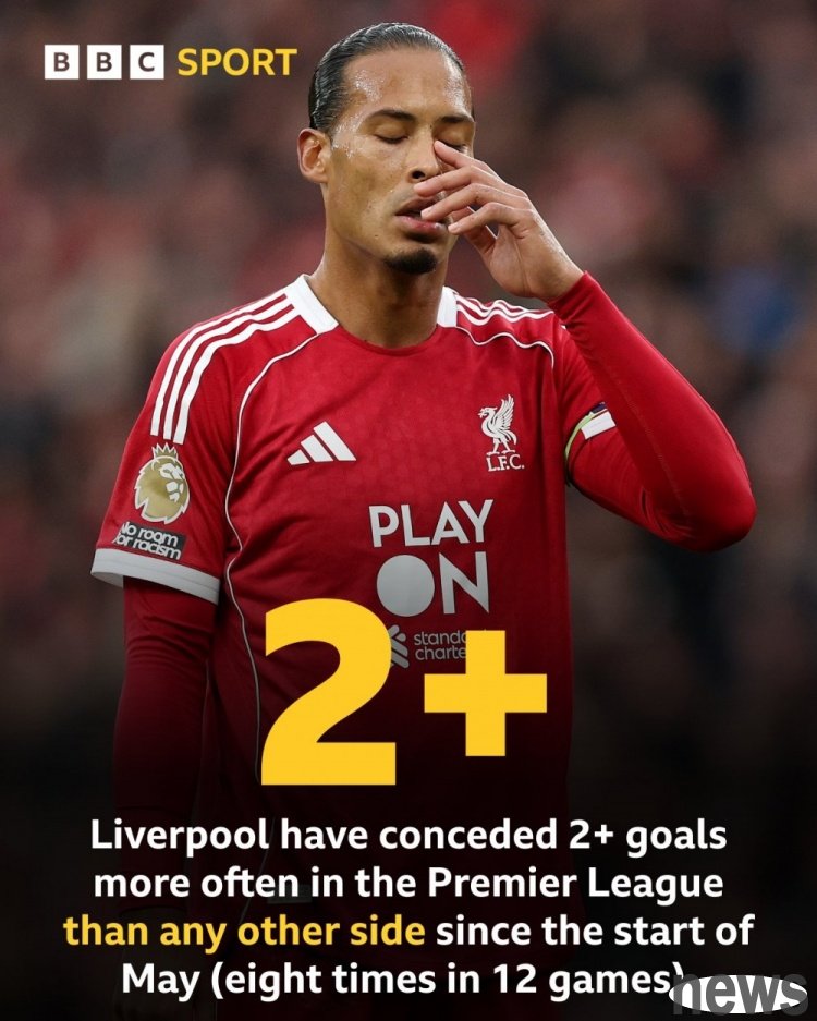 According to BBC statistics, since the beginning of May, Liverpool has participated in 12 Premier League games, of which 8 have conceded at least 2 goals, the most among Premier League teams in the same period.